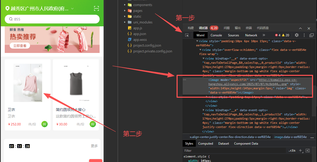 真机微信小程序商品图片不显示商品内容,显示空白页面。