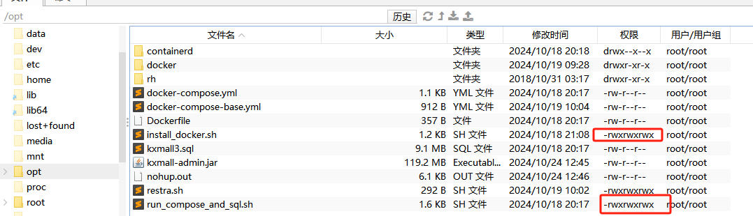 将文件进行解压,所有文件上传至服务器 opt 文件夹下(建议)