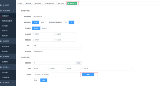 前置仓资料,仓库地址需要根据中文地址,解析出经纬度