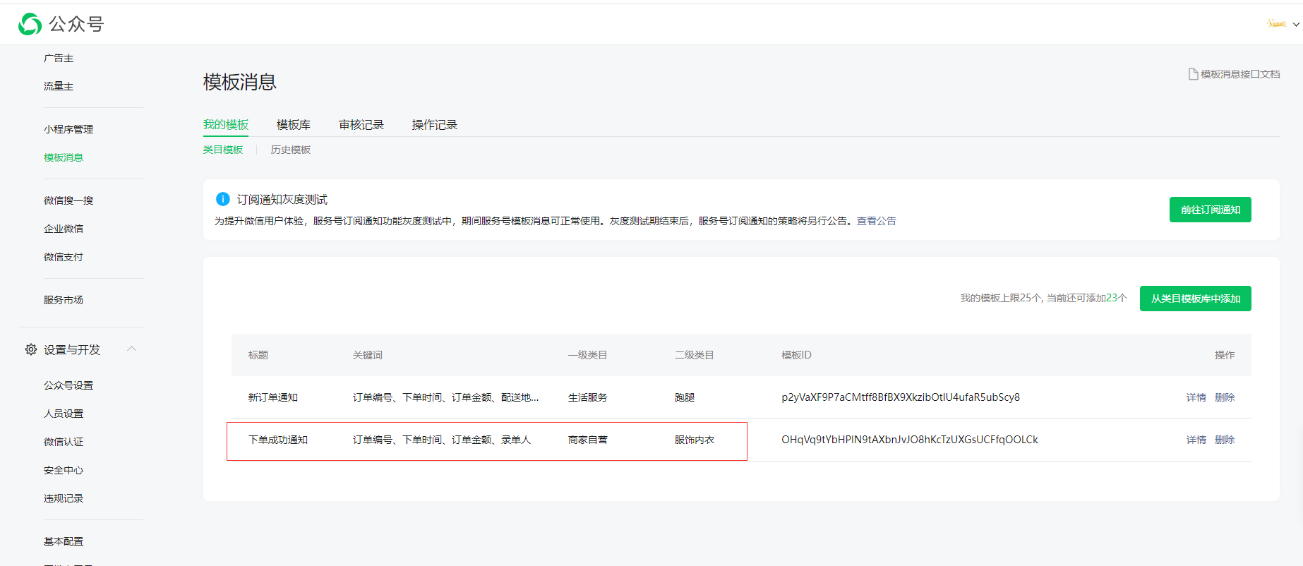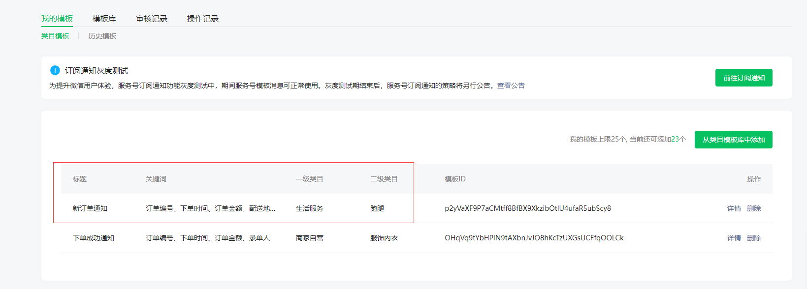 返回订阅成功,即表示店铺有订单推送进来,即会推送消息。