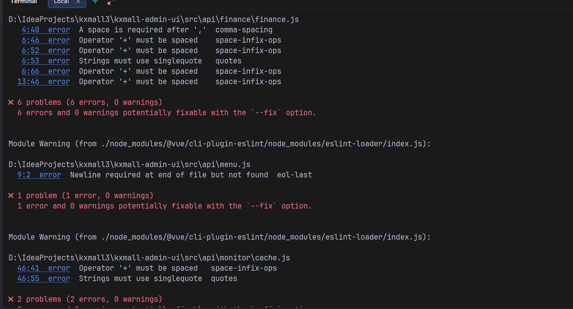 这些错误都是由 ESLint 代码规范检查 导致的。项目本身已经关闭了 ESLint 校验,因此无需处理这些规范问题。