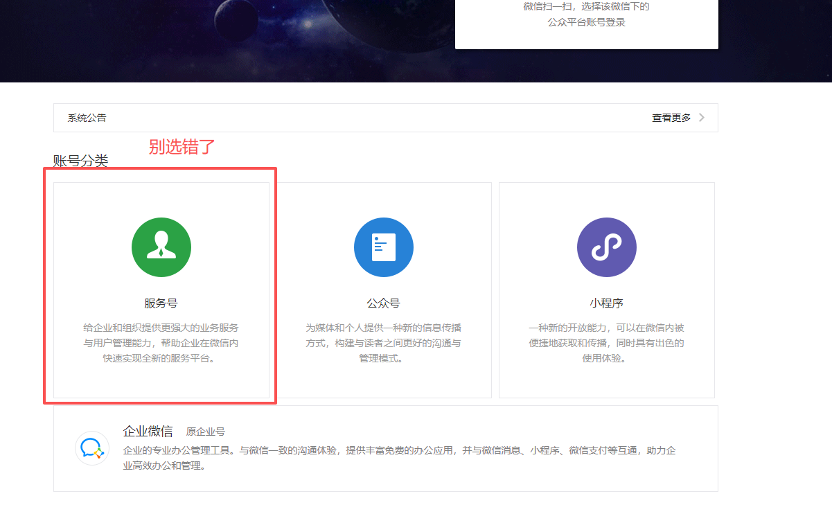 申请微信公众号(https://mp.weixin.qq.com/),必须是认证过的企业服务号 ,后面配置与使用这里以服务号为例。
